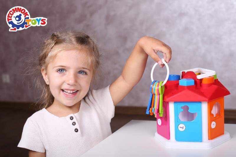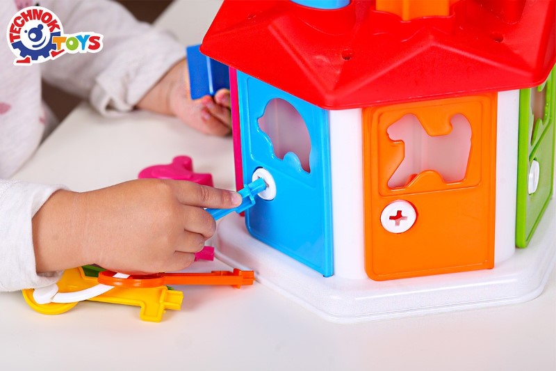 Детска къща/сортер с шест отделни стай с врати, в които живеят различни животни. Всеки жител може да се прибере в своя дом през прозореца, но за да излезе, трябва да му отключите с ключ отговарящ на съответния цвят на врата. През покрива на къщата могат да се преминат други цветни геометрични фигури. Играта е за логика и сръчност. Изработена е от здрава и качествена пластмаса. Подходяща е и за игра в детски градини.
