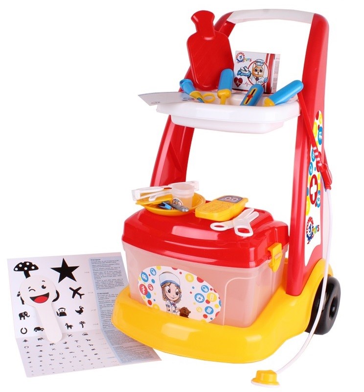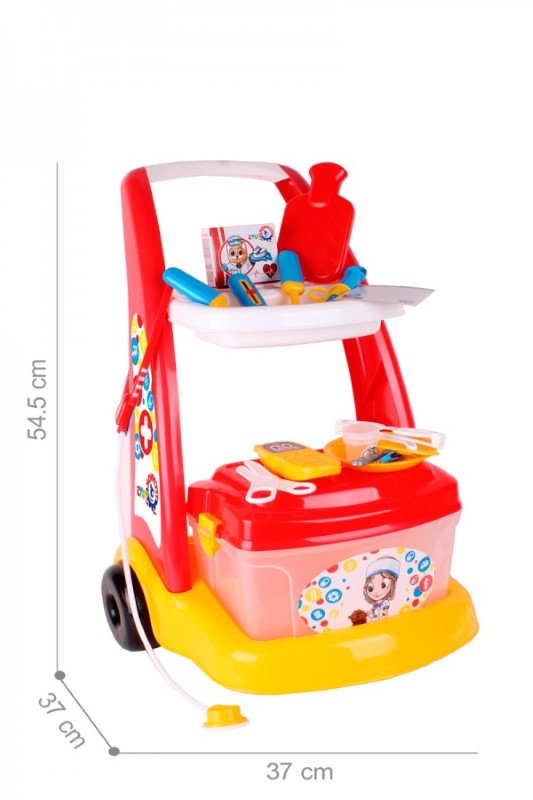 Количка с медицински инструменти „Малкият доктор“ е комплект, който съдържа всичко необходимо, за да се почувства детето ви като истински лекар.