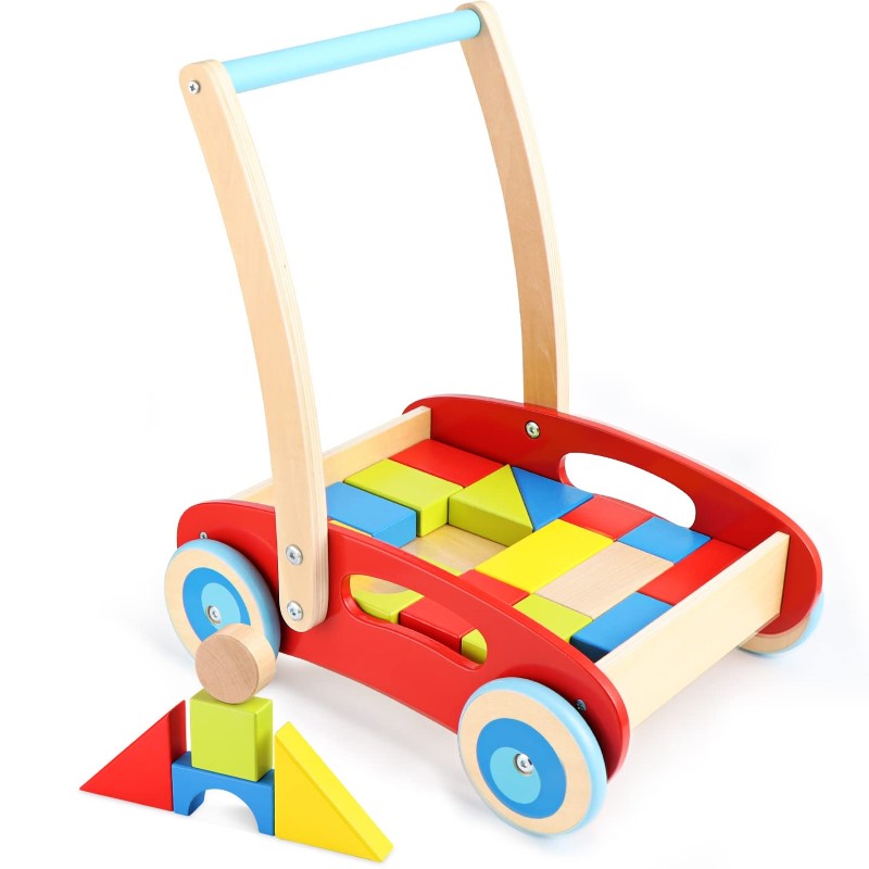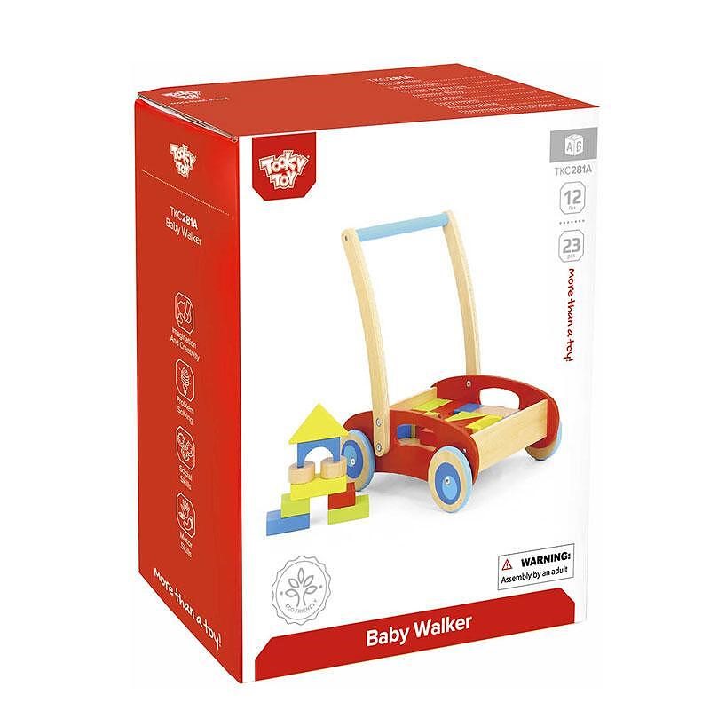 Tooky Toy Дървен количка/проходилка с конструктор