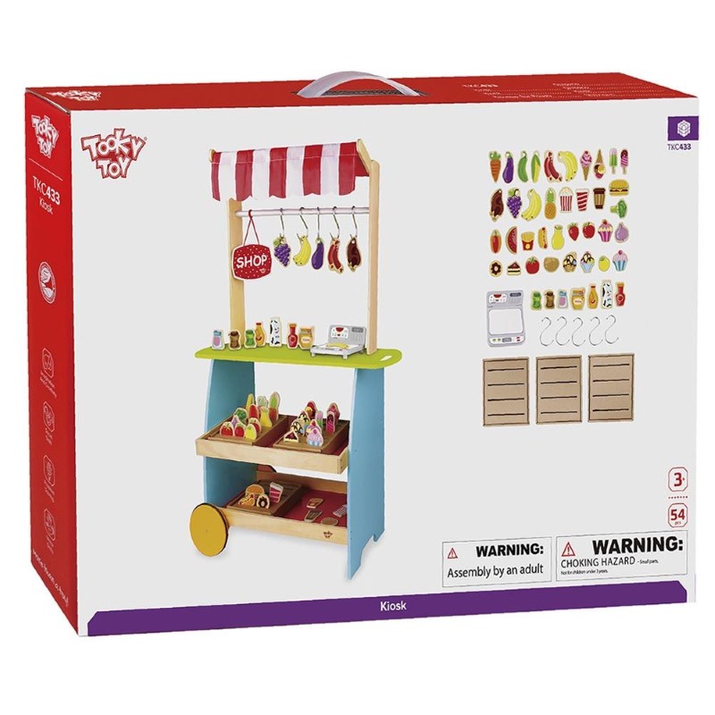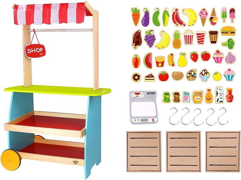 Tooky Toy Дървен магазин/количка за хранителни стоки