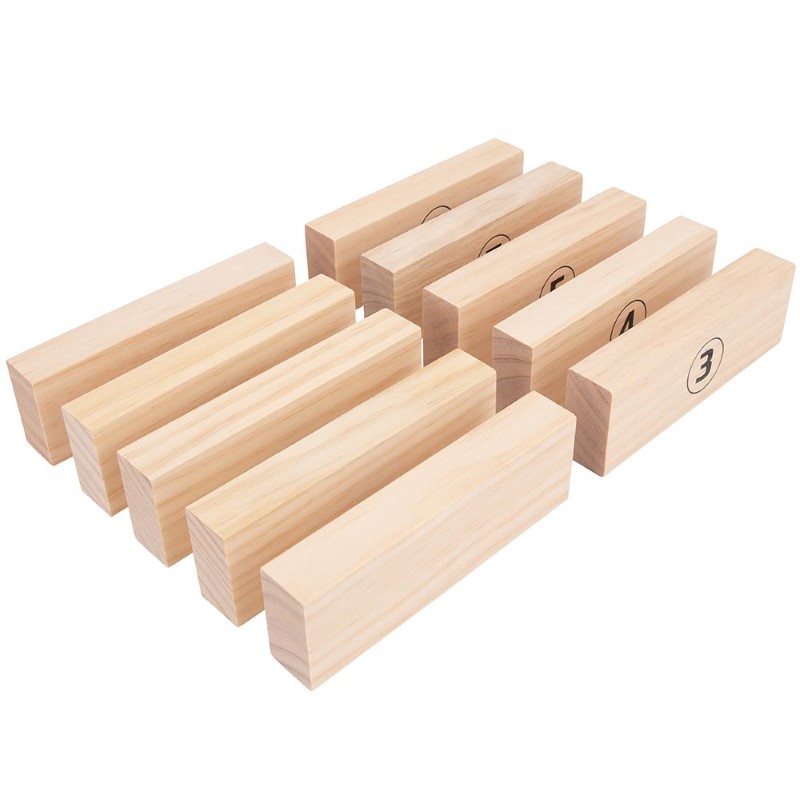 Играта се състои от 56 гигантски дървени блокчета, обозначени с числа, и 100 карти за отбелязване на резултата. Всичко това идва в удобна за съхранение и пренос платнена чанта.