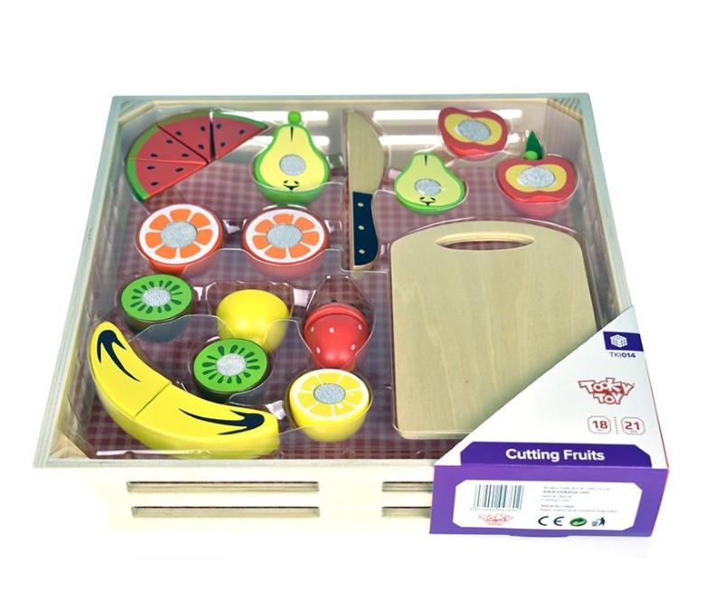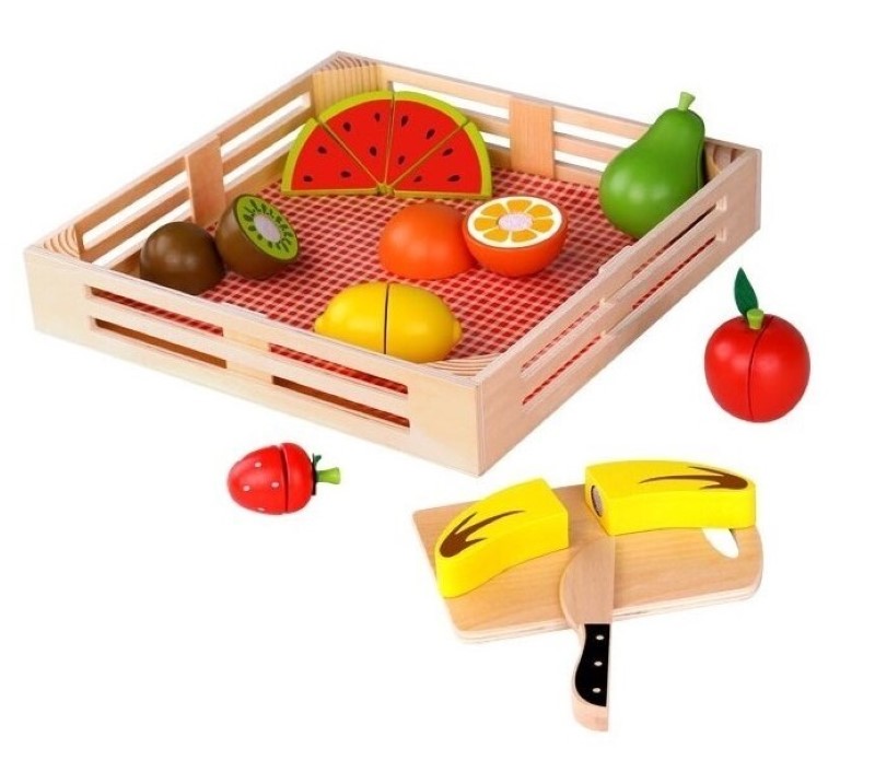 Tooky Toy Дървена щайга с плодове за рязане