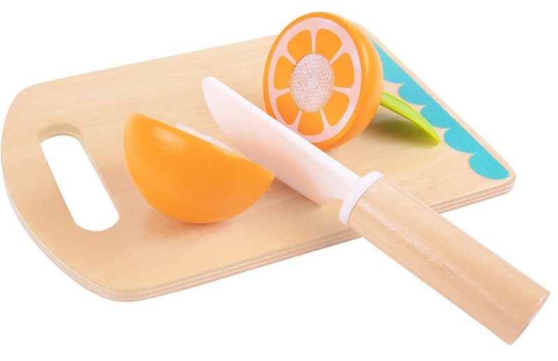 С този комплект с дървени плодове, малките децата ще се научат игриво как да нарязват и подреждат храната и ползите от здравословното хранене. Осигурявайки пълна безопасност, вашето дете може да нареже плодовете на дървената дъска за рязане.