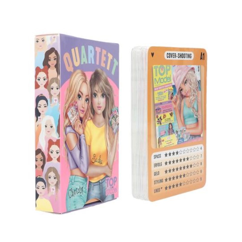 Комплект с карти за игра от Top Model, които ще ви предложат вълнуваща игра на карти за двама или повече фенове на TOPModel с включени снимки, модни ревюта, партита и разбира се много забавления!