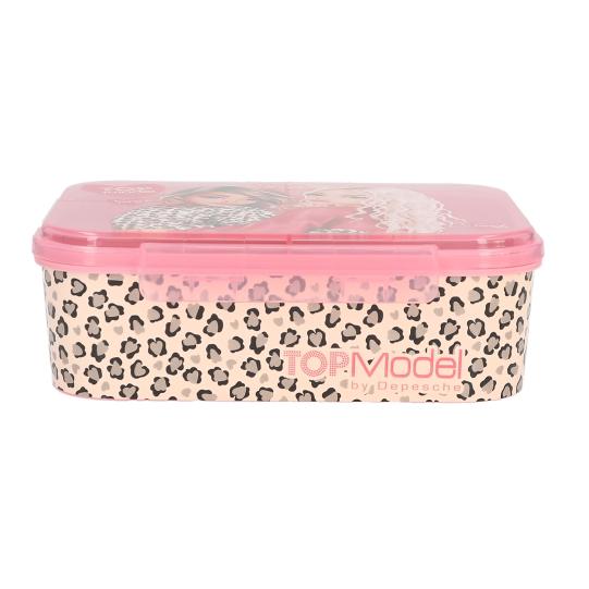 Кутия за обяд от серията Leo Heart на Top Model в розов цвят със страхотен двоен мотив на модели върху капака. Отстрани кутията е с леопардова шарка. Кутията има три отделни отделения за съхранение на различни вкусни храни.