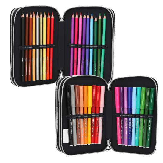 Несесерът разполага с три просторни отделения, всяко от които е пълно с всички необходими пособия за училище или творчески проекти.