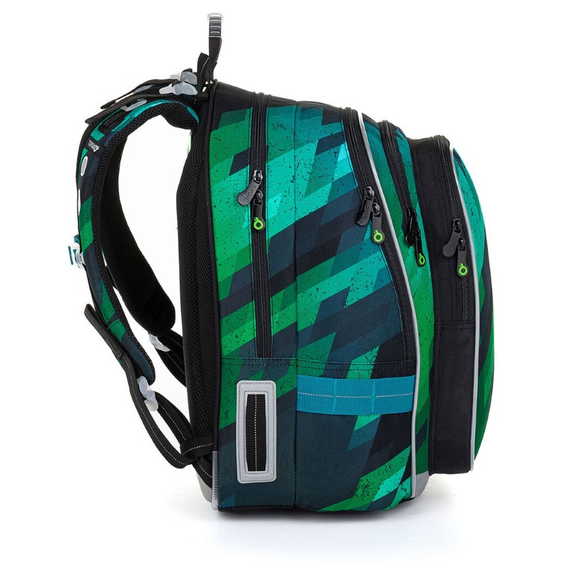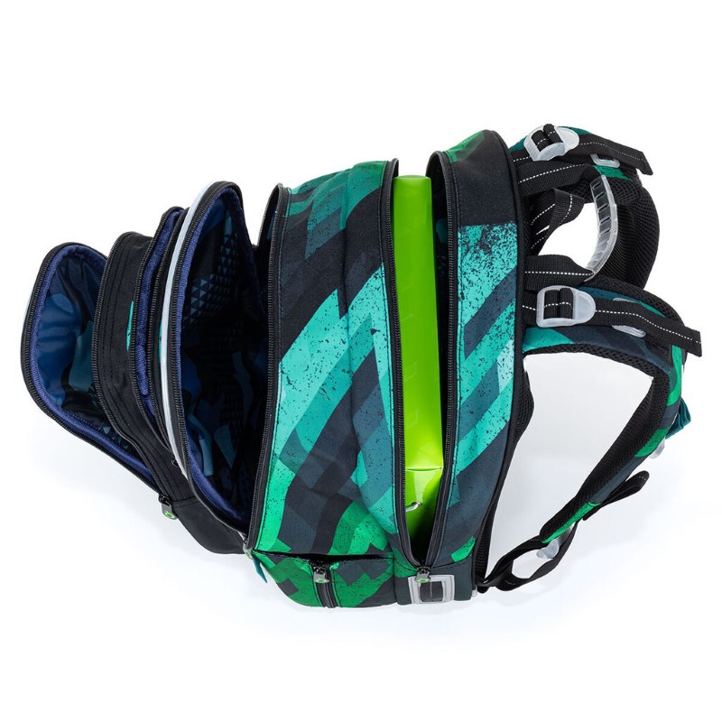 Просторна и обемна раница в зелено-сини цветове, която разполага с две отделения и два големи дълбоки джоба, идеална за ученици от 2-6 клас.