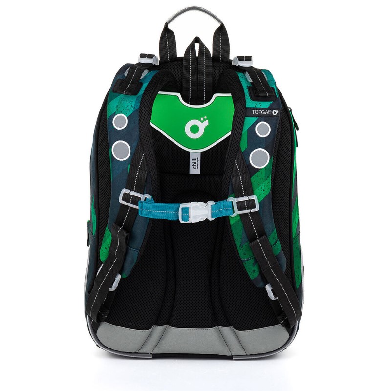Задното отделение на раницата е по-тясно. Идеален е за носене на най-тежките учебници. Предната камера е най-широката и има и практичен мрежест джоб с цип.