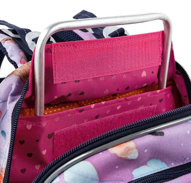 Гърбът и средното отделение на раницата са предназначени за носене на по-тежки учебници, папки и тетрадки. Предното отделение е най-широко, най-малкото, има вътрешен мрежест джоб за документи и подвижен карабинер за ключове, така че винаги ще бъдат лесно достъпни.