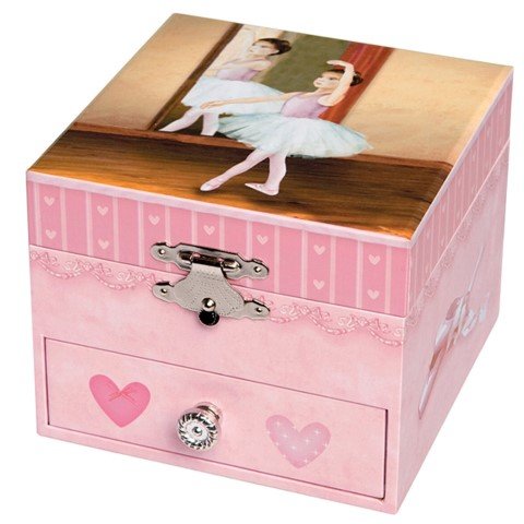 Музикална кутия с чекмедже и огледалце за съхранение на аксесоари и тайни. Когато отворите капачето, ще се покаже красива балерина, която ще танцува в ритъма на музиката: ROMEO & JULIET – ROMEO & JULIETTE.