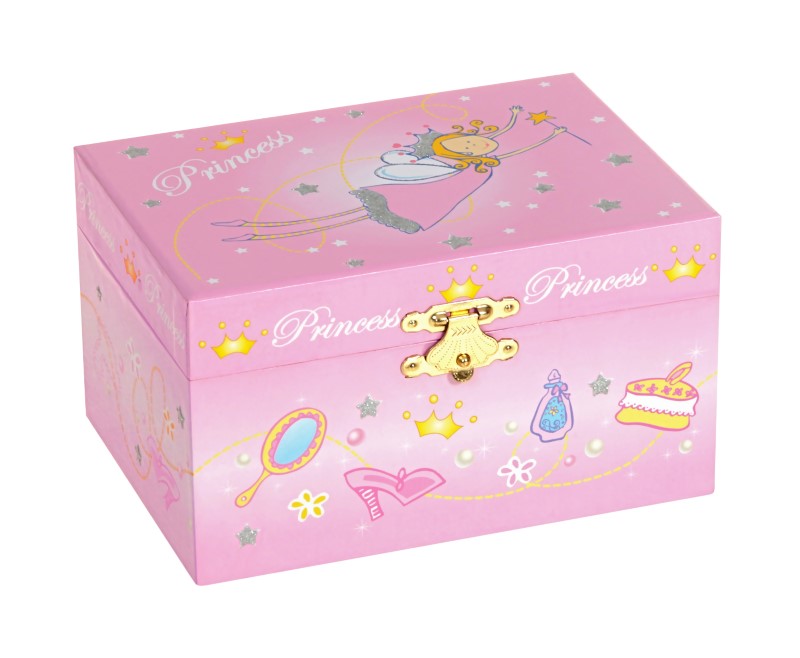 Зарадвайте своята принцеса с тази красива музикална кутийка за бижута. Когато я отворите ще се покаже фигурката на красива принцеса, която ще започне да се върти в ритъма на музиката – RAPSODIE – PAGANINI – S. RACHMANINOV. Кутията има огледалце и достатъчно място за бижута и аксесоари. Направена е от качествени и здрави материали и силно компресиран картон.