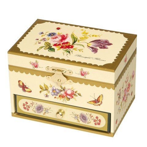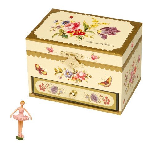 Зарадвайте своята принцеса с тази красива музикална кутийка за бижута. Когато я отворите ще се покаже приказна балерина, която ще започне да се върти в ритъма на музиката – ROMEO & JULIET – ROMEO & JULIETTE. Кутията има огледалце и чекмедже за бижута и аксесоари. Направена е от качествени и здрави материали и силно компресиран картон.