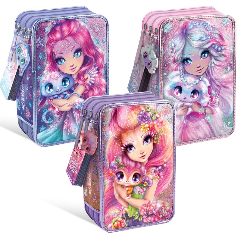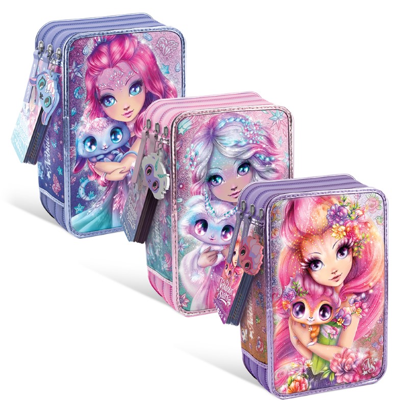 Подгответе се за учебната година със стил и пълна организация с този луксозен трисекционен несесер от Nebulous Stars, вдъхновен от героините Петулия и Палома. Създаден специално за ученици, които обичат да съчетават творчество и ред, този комплект предлага всичко необходимо за училище и креативни занимания – събрано в едно удобно и красиво решение.