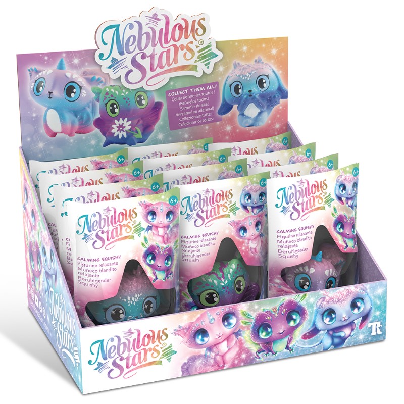 Отпусни ръцете, освободи ума и се потопи в галактика от нежност с успокояващите скуиши от серията Animoulous на Nebulous Stars. Супер меки и възстановяващи се бавно, тези звездни любимци са създадени да донесат радост, релакс и усмивки на всяко дете!