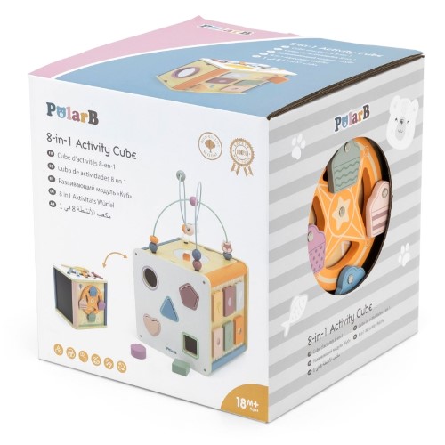 Дървеният дидактически куб Polar B е с различни вълнуващи активни игри и бързо ще се превърне в любима дървена играчка на вашето мъниче.