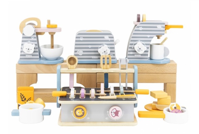 Време е да приготвите нещо вкусно, като за целта ще ви трябва дървения миксер PolarB на Viga Toys. Кой иска да приготви кексчета или палачинки? Играчката е направена с идеята да развива в децата умения от реалния живот. Всички съставки необходими за готвене се намират в този прекрасен дървен комплект. Миксерът има въртяща се дървена бъркалка, която може да променя наклона си, както и копче с различни степени и звук. Към него са включени и купа, едно яйце и брашно. Чудесно допълнение към всяка детска кухня.