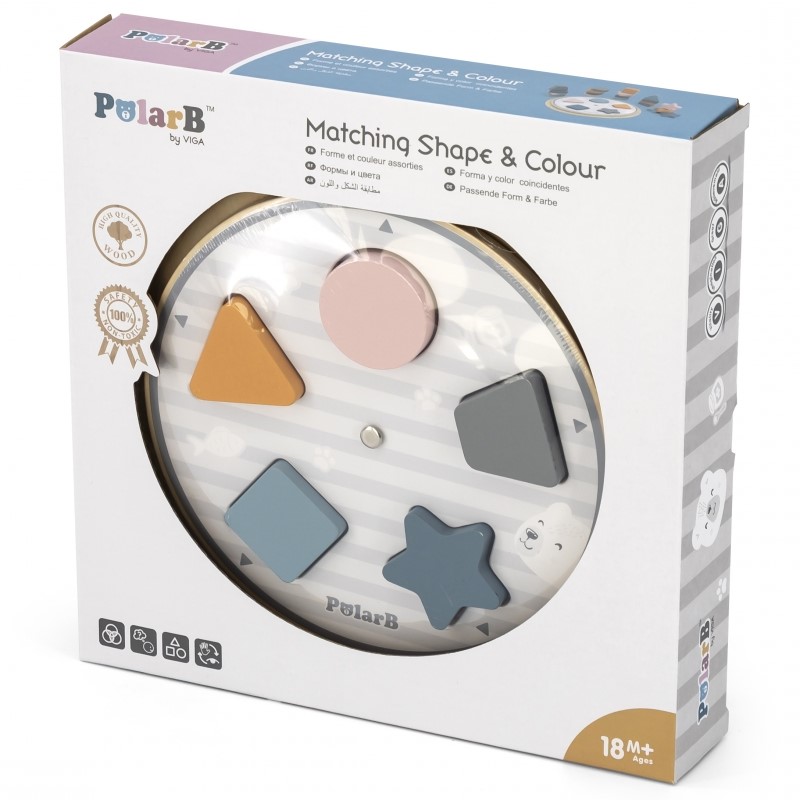 Детският дървен пъзел с цветове и форми е част от колекция на Viga toys – Polar B.