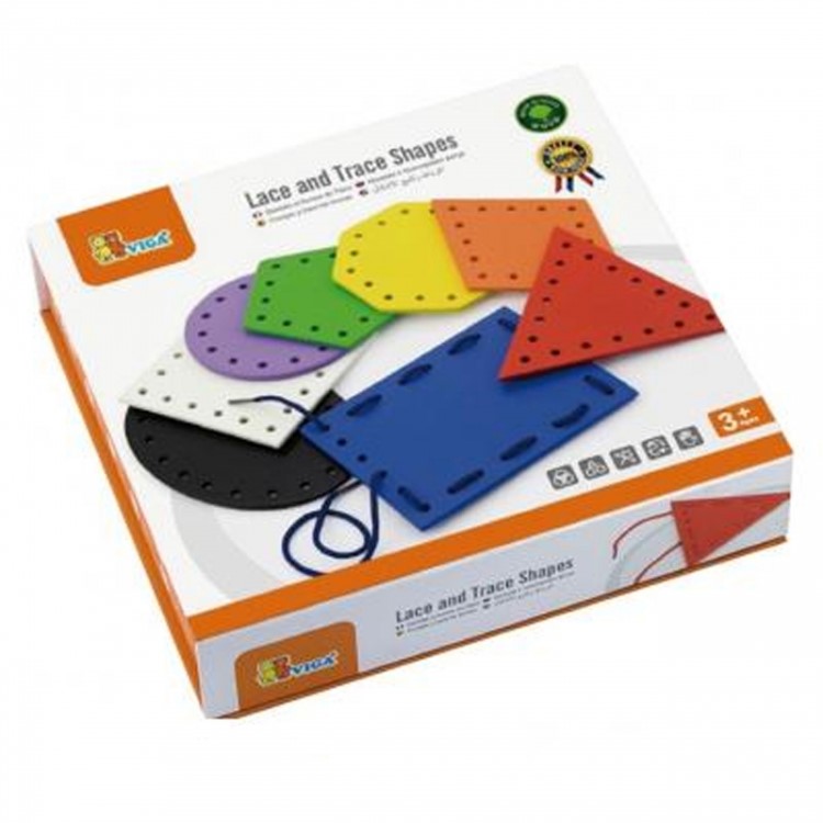 Дървена игра с геометрични фигури за шиене, Viga Toys