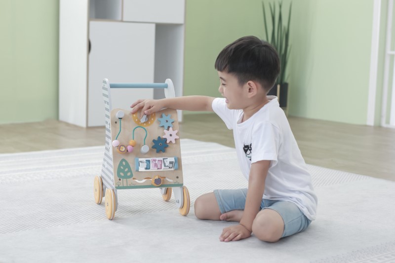 С дървени проходилки за бутане детето ще може да се подпира и придвижва само. Подпомагат мускулите на краката в самостоятелното ходене, без да му дават възможност за сядане и придвижване с прекалено голяма скорост. Детето само избира дали иска да ходи, като се подпира с нея, да пълзи или да поиграе със занимателните игри.