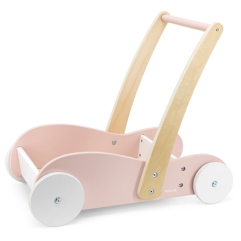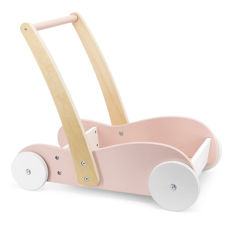 Дървена количка за игра, розова