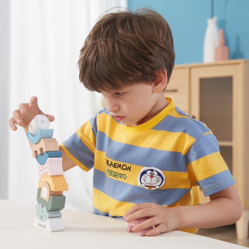 Дървена кула за баланс, която е прекрасен подарък за вашето мъниче. Играта с дървените фигури съчетава първи пъзел и игра за баланс. Детските пъзели само с форми улесняват реденето на пъзели и подкрепят детското развитие. Те ангажират мисловната дейност на детето докато играе. Редейки детски пъзел опитвайки се да запазят баланс, децата развиват логическото си мислени и творческия си потенциал.