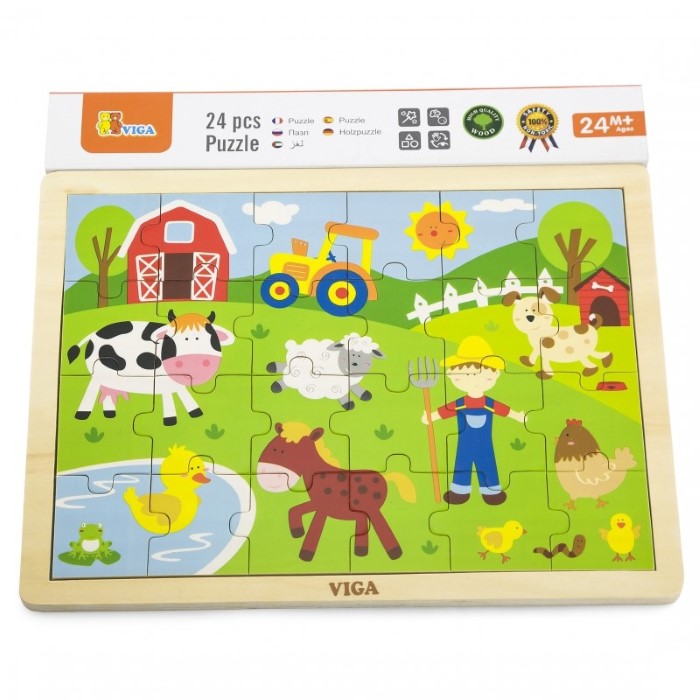 Дървен пъзел Ферма, 24 части – Viga Toys