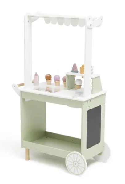 Този дървен магазин за сладолед на колела от Viga toys, ще зарадва всяко дете, което иска да играе ролята на продавач или сладкар.