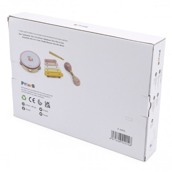 Направете своя група и се насладете на любимата ви музика, която ще свирите с този уникален набор от ръчно изработени дървени инструменти оцветени в нежни топли цветове.