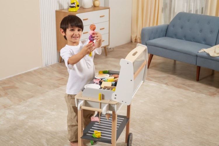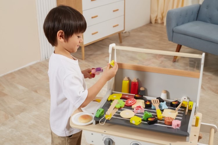 Благодарение на полупрозрачният капак на барбекюто, който се отварят, решетката, която се издърпа и трите копчета които издават звукови ефекти придават по-реалистичен вид на играчката.
