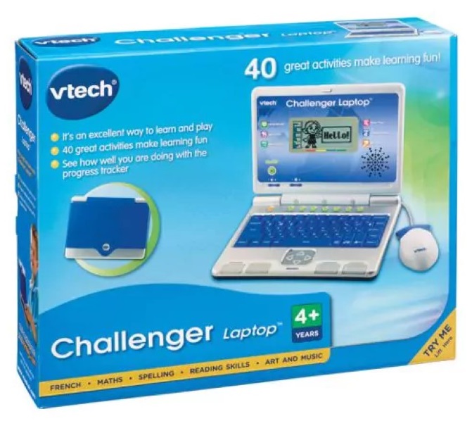 Детски лаптоп включващ 40 учебни програми. Подобрява фонетиката, речника, математиката, музиката и основния френски език в забавно шоу, оформено като игра.