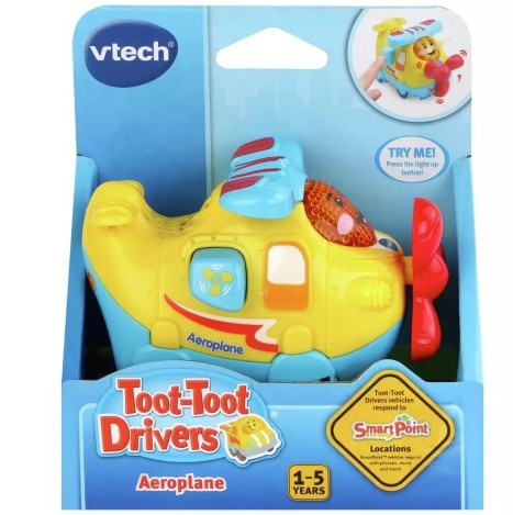 Полетете на високо със самолета Toot-Toot Drivers от VTech. Този самолет е с идеални размери за малки ръчички и ще забавлява детето ви със светещия бутон на лицето ми, който задейства музика, звуци и песни. Бутнете самолета или натиснете бутона за още реакции.