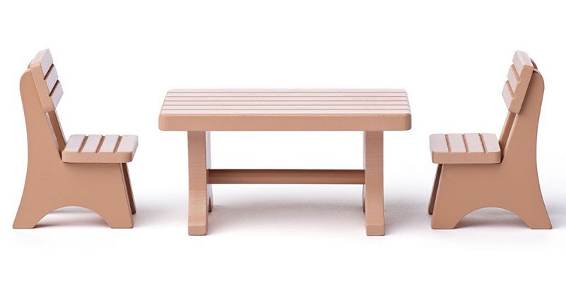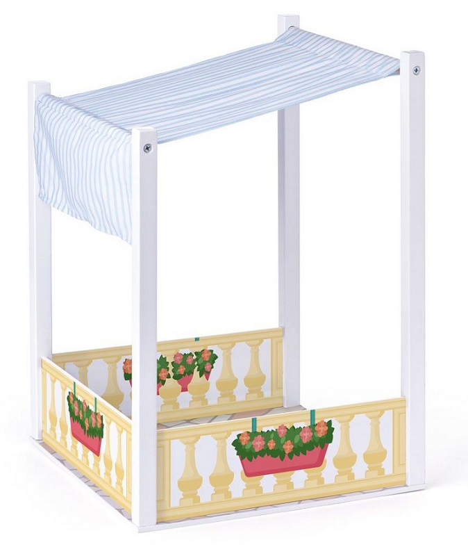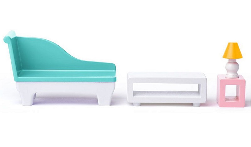 Къщата е с включено обзавеждане – кухненска маса с два стола, кресло, пяно, холна маса, табуретка, легло с балдахин, нощно шкафче, нощна лампа, вана, мивка, тоалетна чиния , маса с пейки и беседката. Подходяща е за игра с кукли до 30 см.