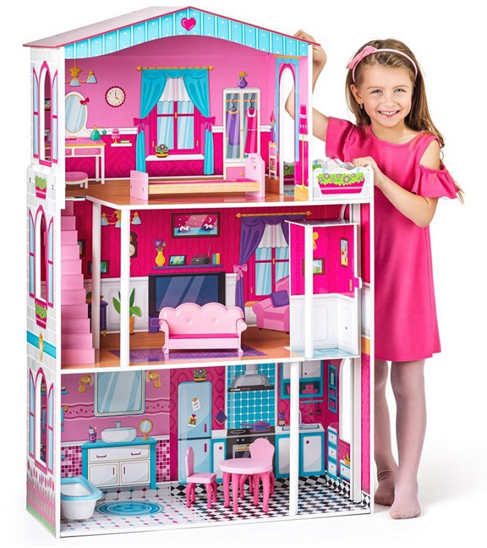 Детска триетажна къща за кукли, изработена от висококачествено дърво, която гарантира многобройни часове на забавления на вашите деца.