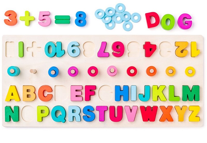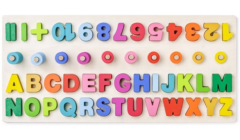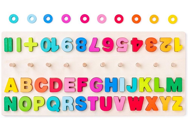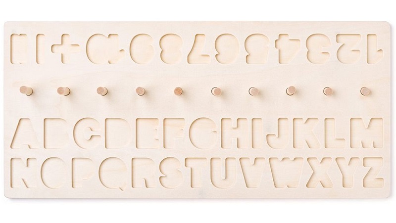 Всяка буква, цифра и знак си има собствено място, а за да е още по-цветно има добавени и разноцветни кръгли елементи. Всички части се нанизват на дъската, а този метод тренира точността, концентрацията и фината моторика на децата.