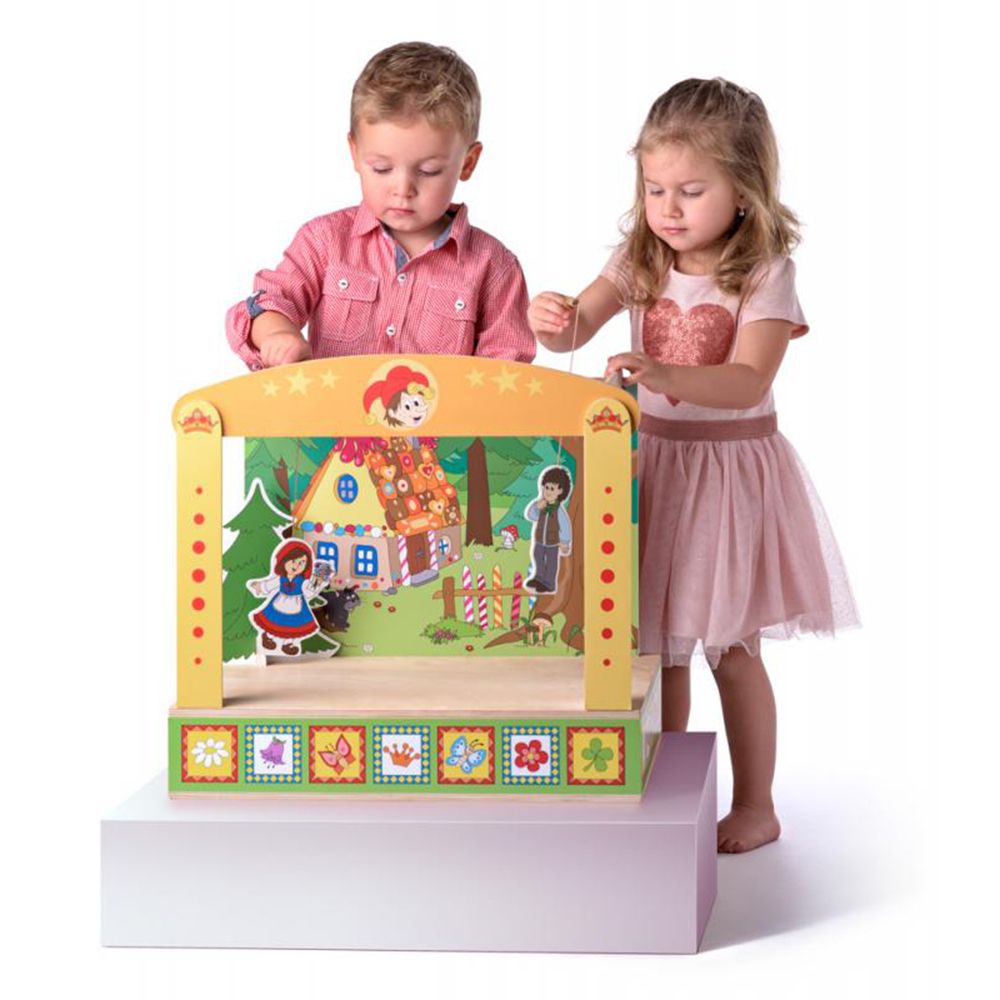 Този куклен театър съдържа 46 части с различни декори – приказен замък, къщата на бабата на Червената шапчица, страшната гора, къщата на Хензел и Гретел и други, както и различни приказни герои като Червената шапчица, Медената питка, Златната рибка, Спящата красавица… Декорите и героите са събрани в дървена кутия, която като се разпъне се превръща в театрална сцена.