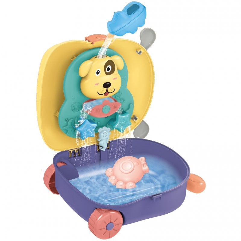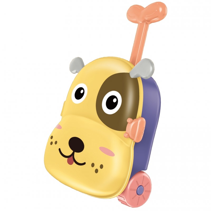 Всяко дете ще хареса външният му вид във формата на куче и с удоволствие ще си го дърпа до плажа или до близкия пясъчник в градинката. Куфарчето е на колелца и с удобна дръжка за дърпане, която се разгъва до 47 см. В нещо децата ще открият гребло, лопатка, формички за пясък и чашка за вода; Всички забавления за плажа ще са им под ръка.