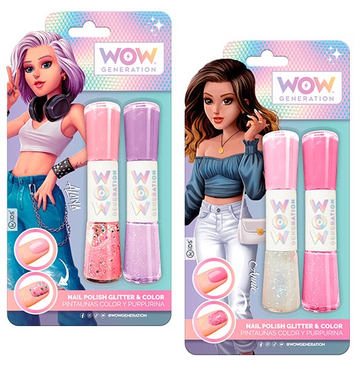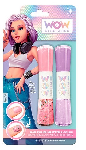 Блистер с 2 двойни лака за нокти от WOW Generation, с които вашето момиче ще допринесе за блясъка на ръцете си.