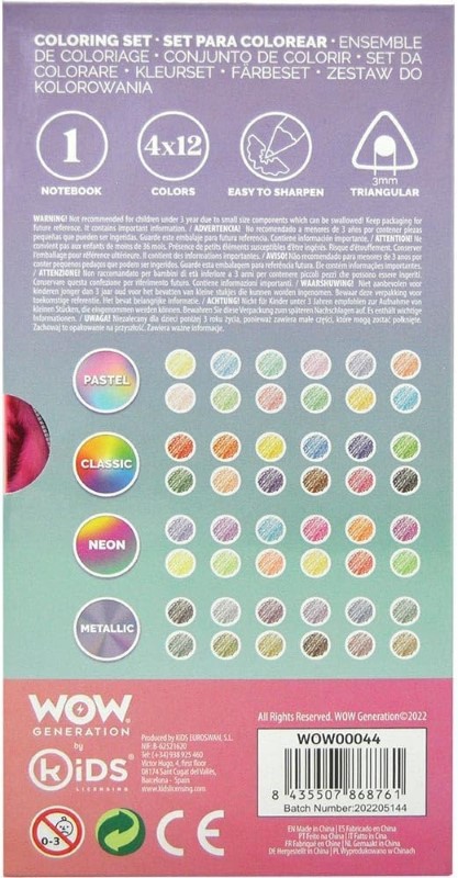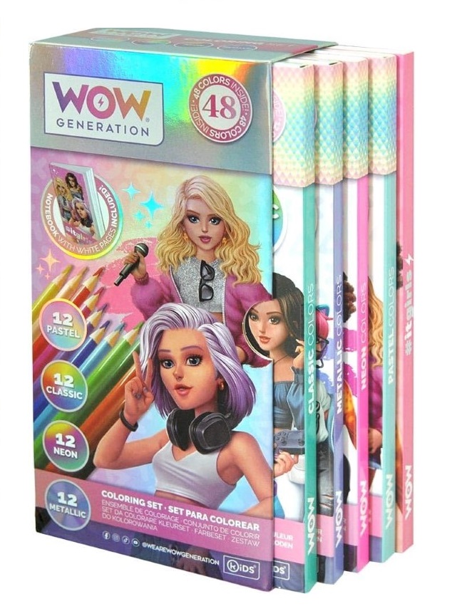 WOW Комплект за рисуване с 48 цветни молива и тетрадка