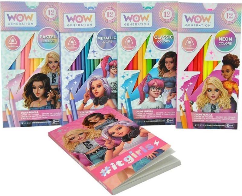 Страхотен комплект за оцветяване и рисуване, с който вашето дете ще може да разкрие творческите си умения с различни цветни моливи. Комплектът включва и тетрадка с празни страници за рисуване. За да се почувства като истинско WOW момиче, дъщеря ви ще използва този комплект за най-специалните си творения. Комплектът включва: